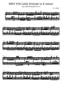 ▶BWV 938 Little Prelude in E minorBach Counterpoint and Fugue - Group (PDMX import)↓ Download Source PDF↓ Download MXL✎ Open Score in EditorLoading…